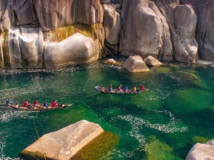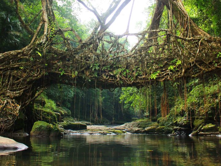 - Visit Mawlynnong Village, known as Asia’s cleanest village, and trek to the Single Decker Living Root Bridge in Riwai. Explore the natural balancing rock and visit Dawki for a boat ride on the crystal-clear Umgot River. Return to Shillong. Overnight in Shillong.